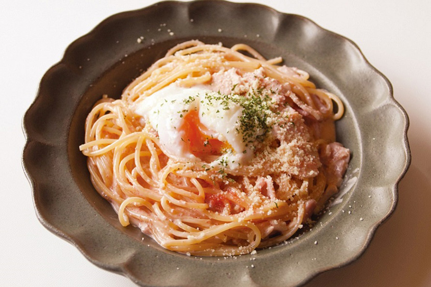 人気ナンバーワンの「半熟卵のたらこカルボナーラ」1050円(税込)。
