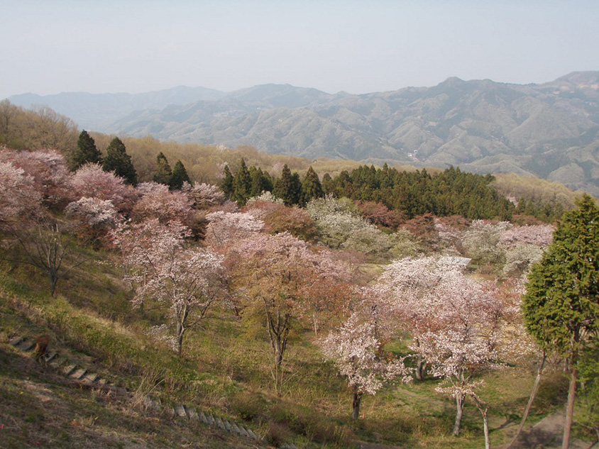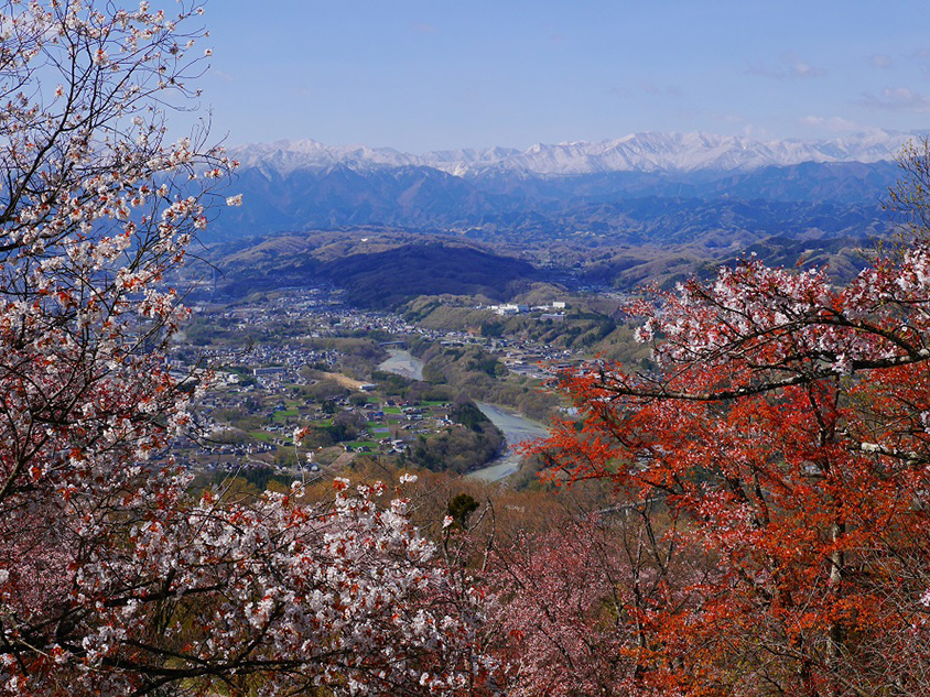 秩父市と皆野町(みなのまち)にまたがる「美の山公園(みのやまこうえん)」は、標高約581.5mの蓑山(みのやま)山頂を整備した41haの公園。ソメイヨシノやヤマザクラ、オオシマザクラなど約70種、約8000本ものサクラが咲く人気の花見スポットだ。緑の桜として知られるギョイコウや、花びらが約300枚もあるケンロクエンキクザクラなど、珍しい桜も植えられており、開花時期もそれぞれ異なるため例年4月中旬~5月上旬までサクラを楽しめる。山頂の駐車場まで車で登れるのも便利だ。