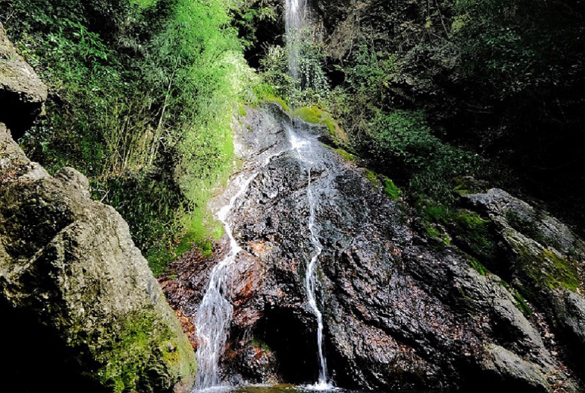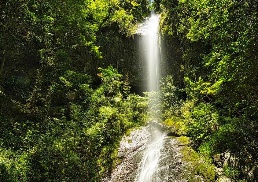 町の東西を有田川が流れる「水が豊かなまち」、有田川町。なかでも「次の滝」は、落差46mを誇る県内でも有名な滝だ。県下の名瀑、那智の滝に次ぐ落差があるという言い伝えからその名がついた。陽光を受けながら一気に滑り落ちる滝水は、爽快そのもの。展望台から遠くに流れる滝を眺めたり、滝つぼまで歩いて降りて行ったりと、樹木が茂る中、新緑と滝を楽しめる。