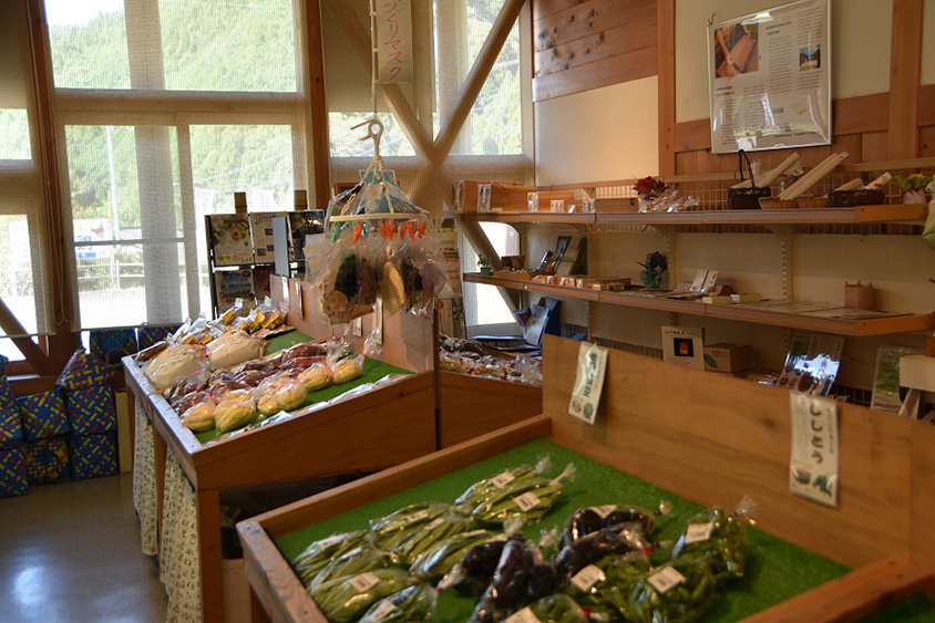 地元で採れた新鮮な野菜が並ぶ店内。