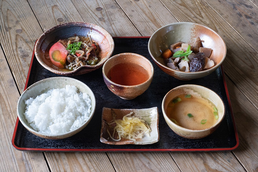 地元の新鮮な野菜をたっぷり使った日替わりの「あらぎ定食」700円(税込)。