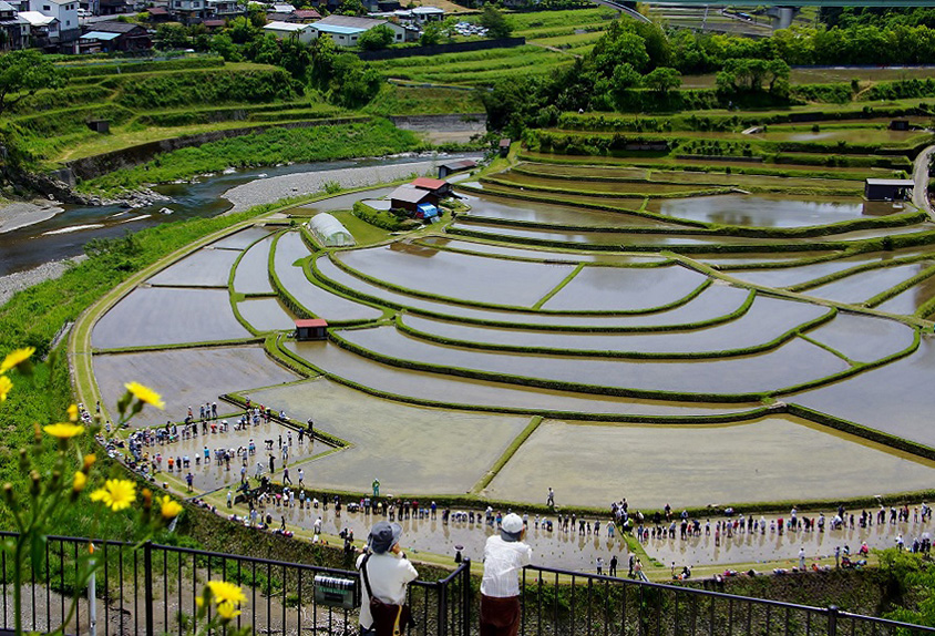展望台から見るあらぎ島。水が張られているのは5月頃。