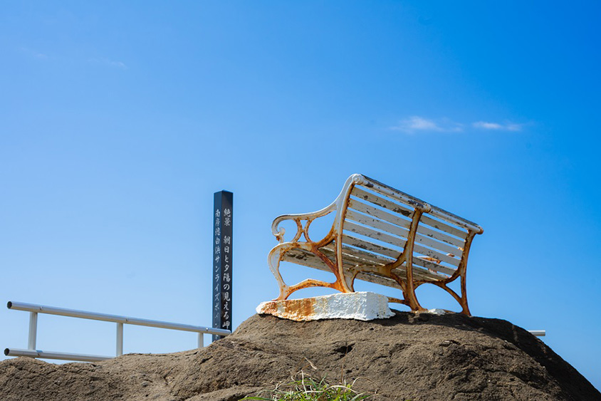 ベンチの前には「南房総白浜サンライズポイント」の碑が建てられている。