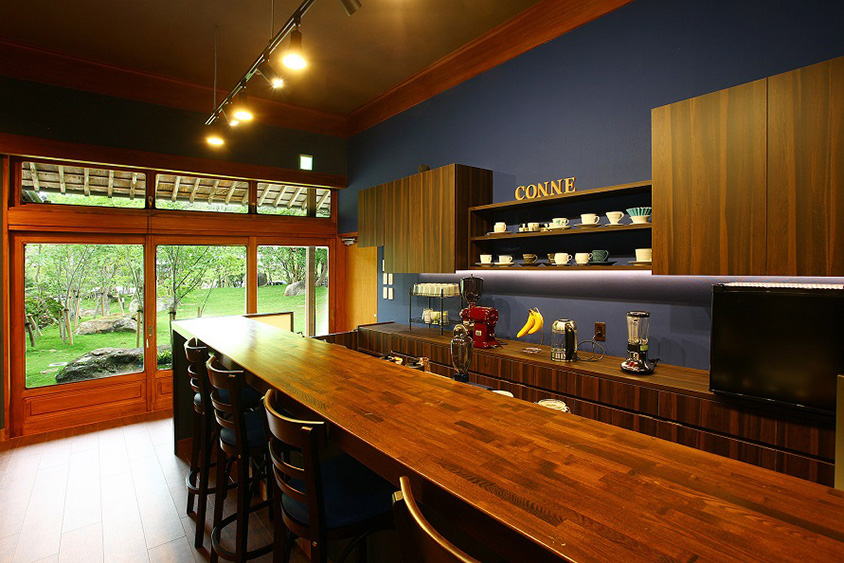 館内にある「CON・NE Coffee(コンネ コーヒー)」。窓から芝生の緑が見える。