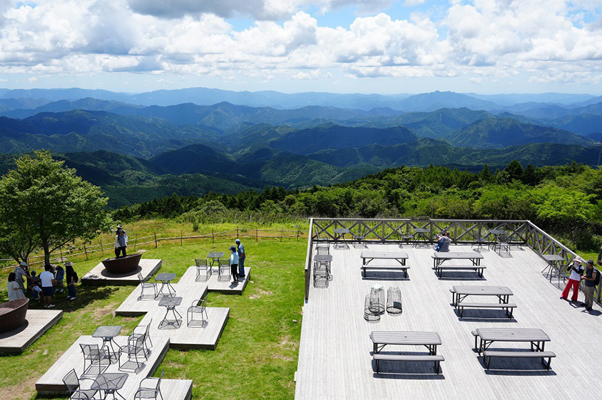 萩太郎山山頂の「スカイガーデン」は、南アルプスの絶景を眺望するビュースポット。