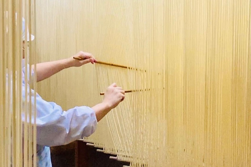 職人が縒りをかけながら延ばして作る、手延べうどん。