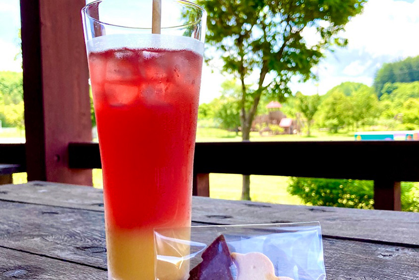 テラス席でティータイム。夏季限定でアイスハーブティーが登場。