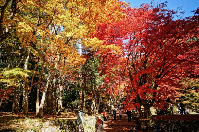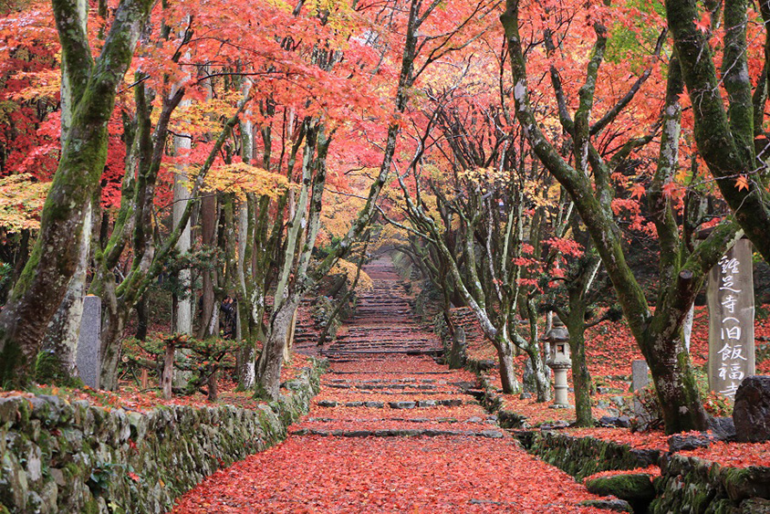 参道の石段脇に真っ赤なモミジ!県内随一の紅葉スポット「鶏足寺」 滋賀県長浜市