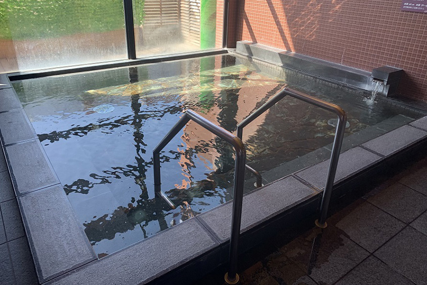 天然鉱石風呂は、浴槽底のSGE石による遠赤外線ミネラル効果で体の芯まで温まる。