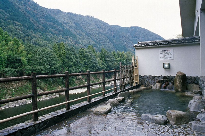 露天風呂から山々の緑と長良川を眺望できる。