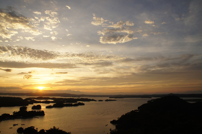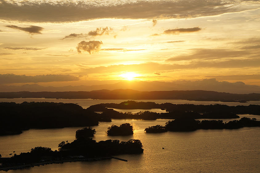 松島湾に陽が沈む夕景は、息を呑むような美しさ。