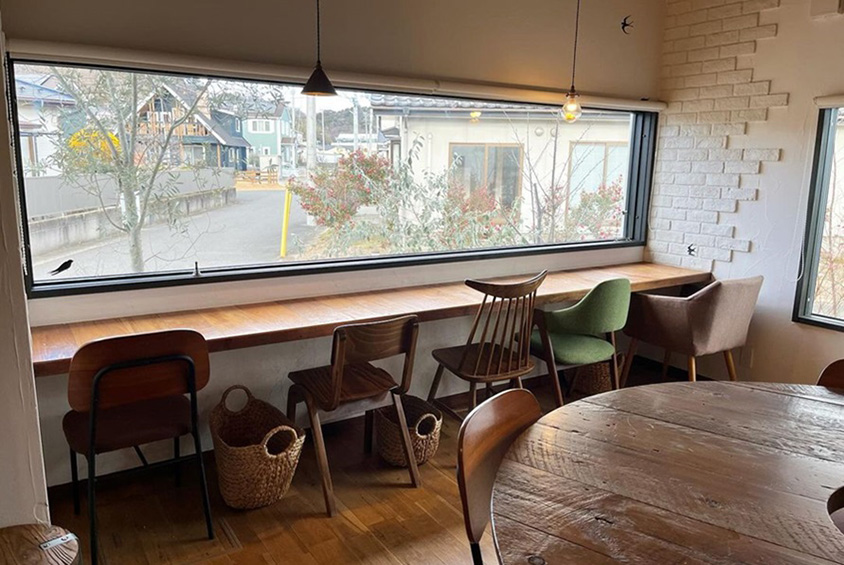 ほっと落ち着ける雰囲気の店内。ツバメのマークが付いた窓に面して、カウンター席が設けられている。