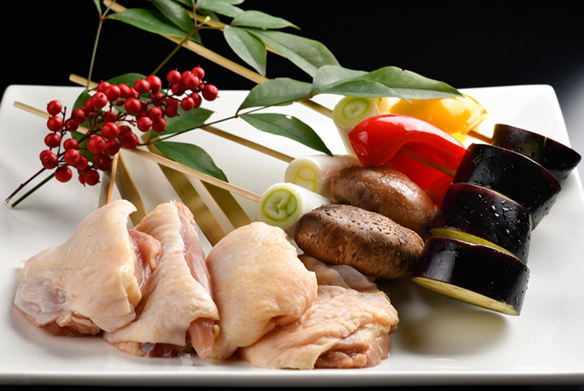 「味創り 雪月花」の炭火焼伊達鶏コースは、放牧スペースのある鶏舎で飼育された風味豊かな伊達鶏を使用。コースには「万里姫ざる豆腐」も付く。
