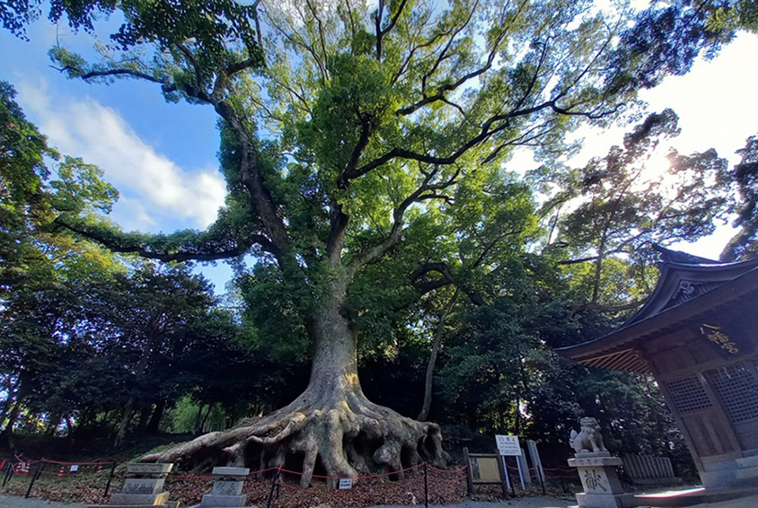 クスノキは病虫害が少なく丈夫で生育しやすいという。大きく張り出した枝と根に圧倒される。
