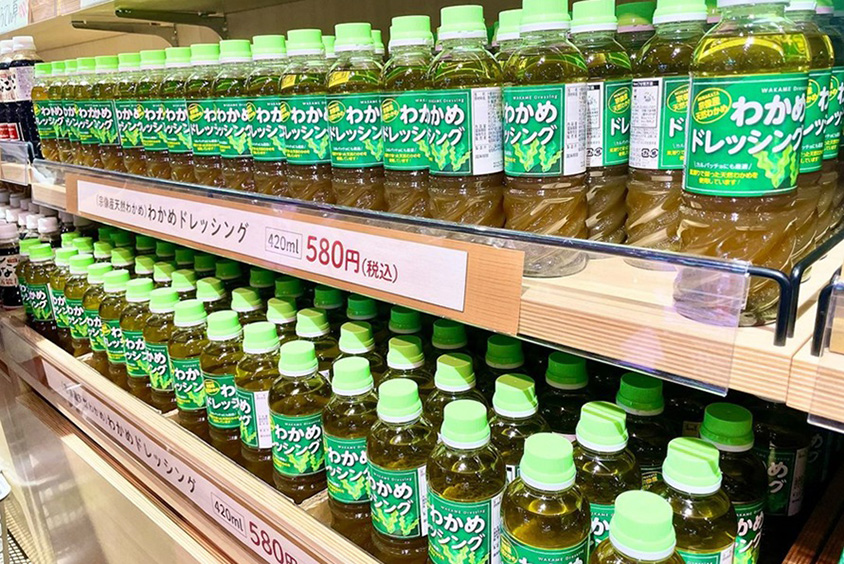 大人気で品切れになることもあるという「わかめドレッシング」。宗像産天然わかめを使用。