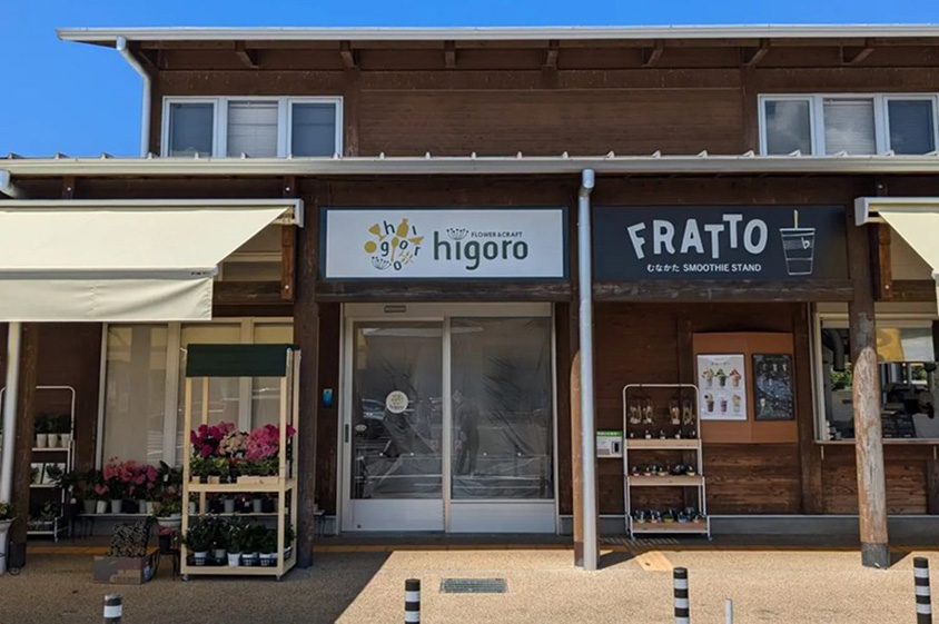 道の駅むなかた東館(旧お土産館)にオープンした「花き園芸と工芸雑貨のお店「higoro」(ひごろ)」。工芸品の「匠コーナー」や催事コーナーは必見。