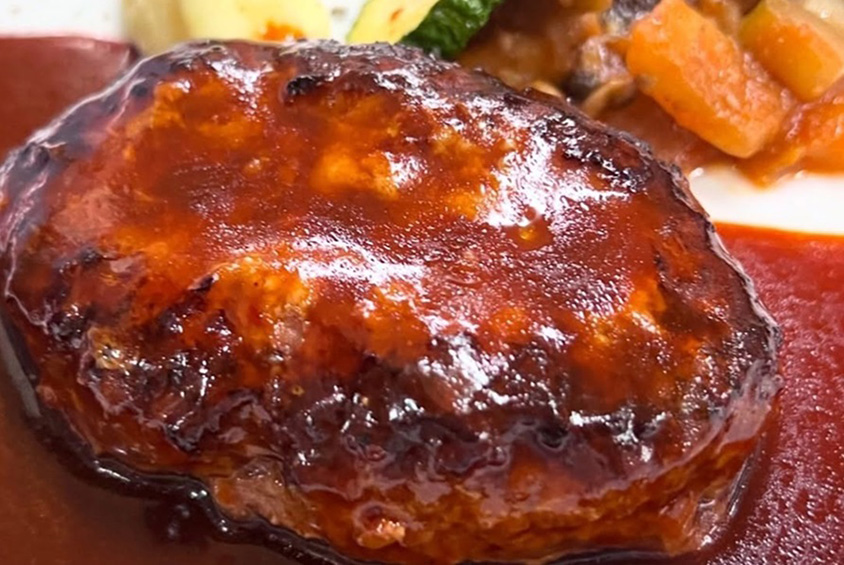 ハンバーグステーキも人気メニュー。チーズ焼きにもできる(追加料金あり)。