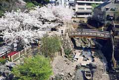 王子駅前に流れる石神井川(音無川)を整備しつくられた公園。木橋、東屋、行灯(あんどん)、水車などを配する純和風のつくりが特長。春は桜が咲き誇り、夏は水遊びが楽しめる。3つのアーチ型の優雅な曲線美を誇る音無橋が架かり、夜はライトアップされ昼とは違った趣を見せる。