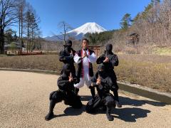 世界遺産・富士山の構成資産である忍野八海の入り口近くにある「忍者テーマビレッジ」。忍者ショーを開催するほか、子どもや外国人観光客に人気の「忍者」をテーマとしたアトラクションや、忍者パフォーマンスを体験できる。雄大な富士山を借景とする本格的な日本庭園には、梅やシダレザクラなど、四季折々の花が咲き誇る。富士山の伏流水を使った、忍野村の名物の蕎麦や豆腐を中心とした日本料理が味わえる飲食施設も併設。