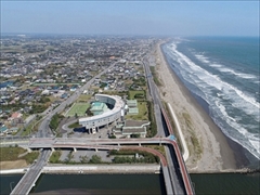 九十九里浜沿い17.2kmを南北に走る、通称「波乗り道路」。県道飯岡一宮線(九十九里ビーチライン)からつながる新一宮大橋近くを起点に、北は片貝ICまで続く。真亀JCTからは東金九十九里有料道路につながるので、東金方面とのアクセスがとても便利。南端の一宮休憩所には食堂、売店、展望室などもあるので、雄大な海を眺めながらのんびりひと休みしていこう。白里料金所は7~8月のみの営業。