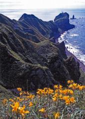 積丹半島を代表する景勝地で、切り立った断崖や奇岩がそびえる最西端にせり出した岬。シャコタンブルーと呼ばれる海は、北海道で唯一、海中公園に指定されている。女人禁制の門から岬の先端までは、両側に日本海の雄大な眺めが広がる遊歩道「チャレンカの小道」をたどる。ダイナミックな大海原の丸みを帯びた水平線をバックに、初夏にはオレンジ色のエゾカンゾウが咲く。岬の最先端には、乙女の化身と称される高さ41mの岩礁「神威岩」がある。