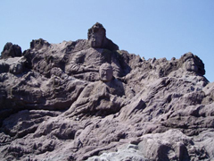 羅漢のある吹浦[ふくら]はもともと漁村だったため、昔から多くの人々が荒波に命を奪われてきた。そのことに胸を痛めた海禅寺寛海和尚は、元治元年(1864)から約5年をかけて諸霊の供養と海上の安全を祈り、羅漢を造った。日本海の荒波が寄せる、海岸の自然岩に22体の仏像が彫られている。