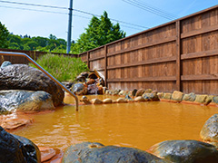 赤褐色の湯が満たされた立ち寄り温泉。泉質は塩化物泉で、切り傷や皮ふ病などに効能がある。内風呂のほか、伊南川や尾白山を望める露天風呂もある。
