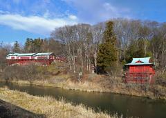 日本五大稲荷の一つで、岩村田商店街の東を流れる湯川の断崖に鎮座する神社。永禄年間、京都伏見稲荷から勧請して創設された。朱塗りの柱に支えられた空中桜閣の社殿は、京都清水寺と同じ懸崖造りである。