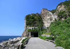 <事前に現地状況を確認ください>輪島市街地から北東に17km、国の名勝に指定された能登半島国定公園の特別保護地区。岩倉山(357m)が断崖となって日本海に臨み、海と岩が織りなす自然美と豪快な断崖風景が続く。能登の親不知(おやしらず)とも称された難所を、海蔵寺(珠洲市)八代住職、麒山瑞麟(きざんずいりん)和尚が、13年をかけて道を切り開いたと伝わる手彫り隧道が残り、SNSで人気のスポットとなっている。冬には季節風で白い波頭が岩に砕け、海一面にふんわりとした綿花状となって風に舞う、能登の冬の風物詩「波の花」が見られる。(名所の「窓岩」は2024年1月の震災で崩落した)