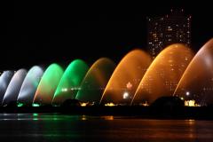 滋賀県のランドマーク琵琶湖の大津港沖に位置し、横の長さが世界最大級を誇る噴水。長さは約440m、高さは約40mもあり、10階建てビルに相当する。沖合180mの地点から盛大に噴き上げられる噴水は迫力満点で、放水される水量や角度により、さまざまな形に変化する。夜間のライトアップでは、グリーン、オレンジ、ホワイトの3色で彩られ、幻想的。