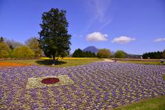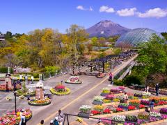 国内最大級のフラワーパーク。大山を望む約50haの敷地では、直径50m、高さ21mの巨大なガラス温室やフラワードームをはじめ、四季折々の草花が1年を通して楽しめる。