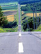 平成11年(1999)、上富良野町民からの募集で選ばれた「かみふらの八景」のひとつ。フラワーランドかみふらのを目印にさらに奥に進むと、激しくアップダウンを繰り返す直線道路が、国道237号まで約4.5km続く。昇降するレールのようなその景観から、「ジェットコースターの路」と呼ばれている。道の両側には、雄大な大雪の山々とのどかな田園風景が広がっている。