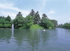 最上公園は、寛永2年(1625年)に築かれた新庄城の跡に整備された都市公園。当時の堀や石垣が残る藩主代々の居城跡には、戸沢神社、天満神社、護国神社の三社が祀られ、現在は市民の憩いの場として親しまれている。春には桜の名所として知られ、約300本の桜が色づく。