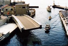 日本で最初に作られた世界でも珍しい旋回式可動橋。昭和期に黒部漁港拡張のために動力昇降式可動橋となり、後に現在の旋回式可動橋に架け替えられた。大きな船の通過の際には重さ307tの橋が片側を基点に78度回転する。