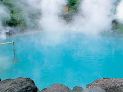 別府地獄巡りの一つ。1200年前の鶴見岳爆発でできた、別府地獄の中で最大の面積を誇る地獄。鮮やかなコバルトブルーの色はとても地獄には見えないが、実は摂氏98度の熱湯だ。そのお湯をオーブンの鉄板に流し込んで蒸し焼きにした地獄蒸し焼きプリンがあり、1個300円。表面はほんのり焦げてパリッと香ばしく、中はとろっとなめらかだ。海地獄へ行ったらぜひ味わいたい。