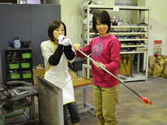 ガラス制作体験ができる施設。吹きガラス(10歳以上)3800円~。要予約。