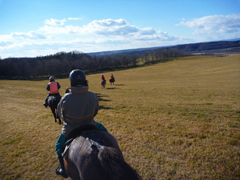 小柄でおとなしい性格のどさんこで乗馬体験ができる鶴居どさんこ牧場。初心者でも楽しめる外乗りトレッキング半日9100円や1日コース1万7300円など釧路湿原の自然を満喫できるコースを用意(要予約)。牧草地では引き馬1100円も行っている。