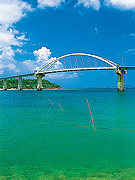 瀬底島と本部半島西側を繋ぐ。全長762mと長くはないが海面から高さがあるため素晴らしい眺めだ。橋全景を見るなら瀬底島側の展望所がおすすめ。