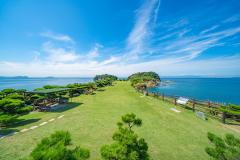 平坦で海に長く突き出た地形「番所ノ鼻」にある庭園。眼下には珍しい紀州青石(緑泥片岩/りょくでいへんがん)の海岸美が広がる景勝地で、瀬戸内海国立公園内の「景勝地五十ヶ所」にも選ばれている。聖武天皇の行幸の際、藤原卿が詠んだ歌の歌碑が庭園内に建っており、万葉ゆかりの地として親しまれている。紀州藩はここに遠見番所を設け、海の防備を固めた。松の木が植栽された広い芝生では、海を眺めながらゆっくりくつろげるほか、御影石を敷き詰めた通路をのんびりと散策できる。磯釣りやバーベキューも楽しめる。