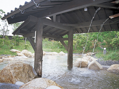 日本三美人の湯のひとつに数えられる湯の川温泉にあり、美肌効果があると人気の立ち寄り湯。石造りの内湯の外には、木々に囲まれた広々とした露天岩風呂と、源泉掛け流しの風呂、打たせ湯がある。湯上がりの休憩には、2階の大広間が利用できる。