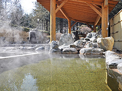 千本松牧場敷地内にある千本松温泉は、源泉掛け流しの天然露天風呂温泉。植物由来のモール成分を含む豊かなアルカリ性泉質の美肌の湯。湯上がり時の肌のうるおいを感じられる。男女それぞれに内湯と露天風呂を用意。植栽と自然に囲まれた露天風呂からの眺めは、身体だけでなく心もリラックスさせてくれる。