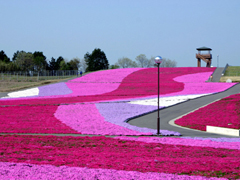 関東有数の芝ざくら公園。総面積1.8haの敷地を覆い尽くす4色約20万株のシバザクラで表現した、川の流れのようなデザインが訪れる人の目を楽しませる。4月上旬~5月上旬は「芝ざくらまつり」を開催。祭り期間中は敷地内の「レストランはな」や直売所の他、地元商店などによる模擬店が多数出店する。