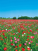 小貝川沿いの約3万平方mの花畑にポピー、キンセンカなどが咲く。