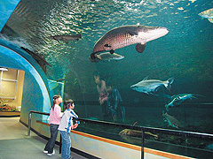 四万十川学習センターおさかな館では、四万十川の自然景観を再現展示。土・日曜、祝日(ゴールデンウィーク・春・夏・冬休みは毎日)にはかわいいペンギンの散歩が見られる。時間をチェックしておこう。また四万十川の幻の怪魚・アカメや、ピラルクなどの熱帯雨林の魚たちが間近に迫るトンネル型の大水槽は迫力満点。