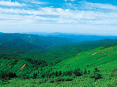標高1560mにある山頂駐車場に最も近い展望台。目の前に望む高倉山や乳頭山、秋田駒ケ岳などの眺望が圧巻。この沢の上流部はマツ科のオオシラビソ、下流部はブナの原生林で覆われる。多くの野生動物と出会うこともある。