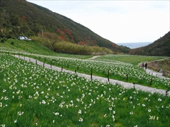 雄大な紀淡海峡を望む絶好のロケーションにある水仙畑は、平地なので車いすの人や足腰の弱い人でも見て回れる。1・2月は日本水仙や白い水仙、横房水仙などが咲く。3月には水仙畑の花が終わり、そこへ行くまでの車で通る道の斜面に、ラッパ水仙や春咲水仙が咲きはじめる。カーブを曲がるといきなり目の前にとびこんでくるラッパ水仙の透明感は感動ものだ。『探偵ナイトスクープ』で取材された「ナゾのパラダイス」も併設。車でのアクセスやバス発着時間など、交通手段の問い合わせは洲本市観光案内所(0799-22-0742)まで。