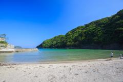 下田市街に最も近いビーチで、地元の子どもたちにはホームビーチとして親しまれている。入り江のため、ほとんど波がなく、家族連れや女性に人気。下田海中水族館やペリーロードなどの観光スポットも近い。