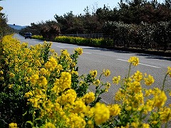 館山市下町交差点から南房総市和田町まで約46kmの房総フラワーライン。中でも、平砂浦の海岸沿いを走る館山市相浜から伊戸にかけての道(約6km)は、1月から春にかけて菜の花が道の両脇を彩り、「日本の道100選」にも選ばれている。また、夏にはマリーゴールドが咲き誇り、季節の花々を楽しむことができる。