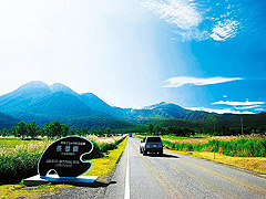 やまなみハイウェイの中でも人気のエリア。走るほどに、雄大なくじゅう連山が目の前に迫る圧巻の景観が楽しめる。「長者原」看板の手前の路肩には駐車スペースがあるので、車を降りて高原の空気を深呼吸して。