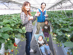 立ったままでイチゴ狩りが楽しめる高設土耕栽培で、通路はベビーカーや車椅子も通れる広さ。30分食べ放題で、紅ほっぺやさちのか、希少品種である桃薫、やよいひめ、おいCベリー、アスカルビー、レッドパール、あまおとめ、よつぼし、とちおとめなど最大23品種の食べくらべができる。